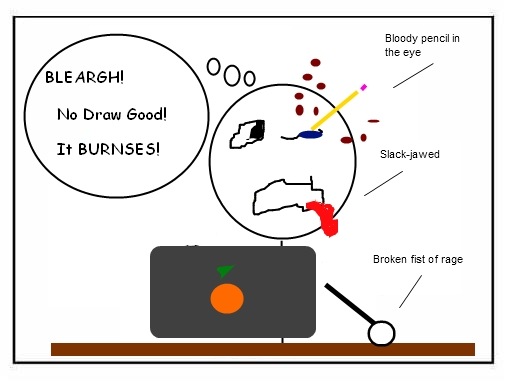 Yes, my drawings largely look they were drawn by someone with tiny, disproportionate arms flailing about like a spaz, barely able to contain a drawing implement.