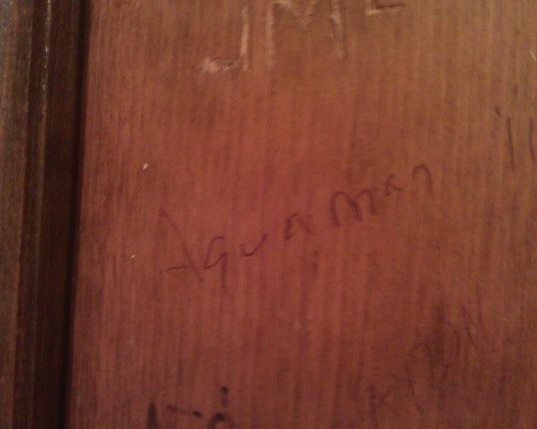 For whatever reason, though, someone had taken a moment to leave their mark on the door of the Old Dublin by invoking the name of Aquaman, who I think we can all agree is the least super of the super heroes of our youth.