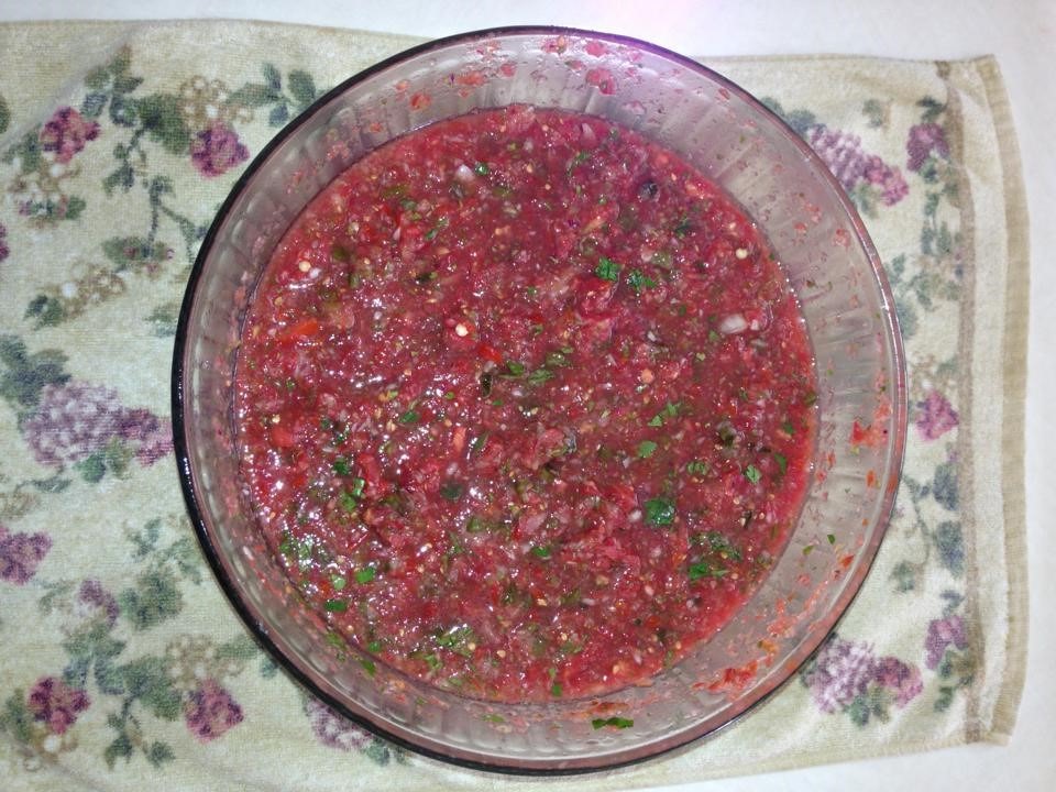 Sunday afternoon, then, as my Bengals (with whom I’ve resigned myself to having a love/hate relationship from now until The End of All Things even though I know better) were busy giving away a double-digit lead en route to losing a very winnable football game against the Chicago Bears by being thoroughly undisciplined and seemingly unprepared, I turned that basket o’ goodness into a ginormous bowl of Puddin’s Salsa*.