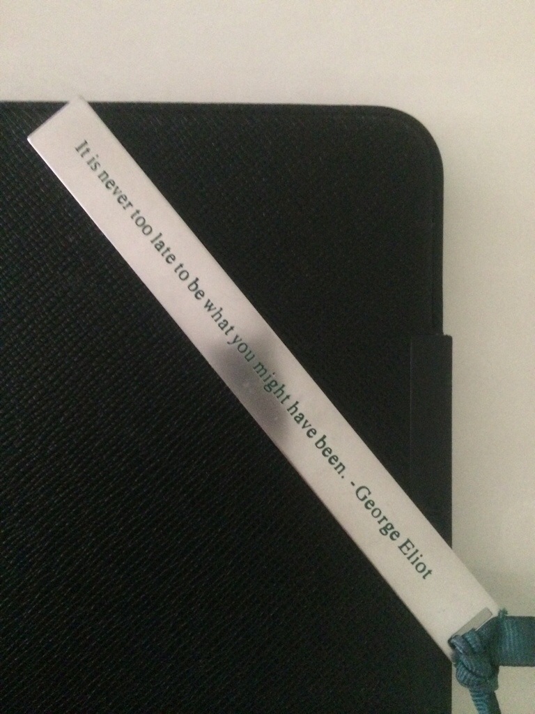 Anyway, back then, my idea of becoming a writer someday wasn’t a goal so much as an occasionally voiced longing that was all talk and no do. But the thing that makes the Puddinette perfect for me is that, dreamer that I am, she somehow gets the difference between my idle daydreams and those things for which I carry a spark of real passion buried deep within. So she got this bookmark for me for Christmas, to add fuel to that passion for writing, even as it was, at the time, barely more than a pair of sticks being rubbed together in the hope of catching sparks.