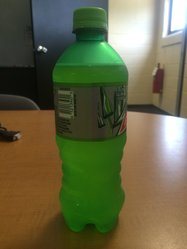 So this afternoon I went to the vending machine, offered up a sacrifice of quarters, and received a cold green bottle that brought a smile to my face, however briefly. It’s not something that’s really all that good for me, but for a little bit of time, it made me happy nonetheless.