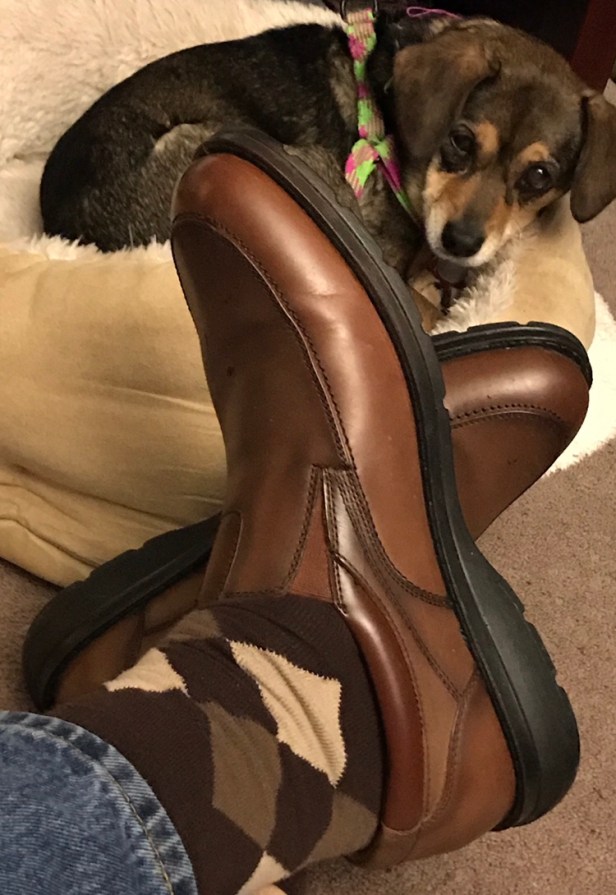 After I posted Work Tunes last week, the Puddinette was minorly aghast because while she loved the record player socks, the state of my aging, worn, brown shoes was apparently just plain sad. Thankfully, we have Amazon these days to address our sad footwear situations without requiring anyone to step on cursed metal foot sizer contraptions that every 8 year old KNOWS is certain to eat their foot like a snake swallowing a full sized rat, starting with the big toe.