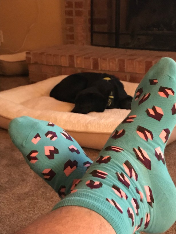 Tonight (or is it this morning by this point, I suppose?), I’m gonna keep it short and to the point. Look: more odd shapes! Pink and brown and powder-ish blue! Plus a puppy! Adorably sleeping in the background!