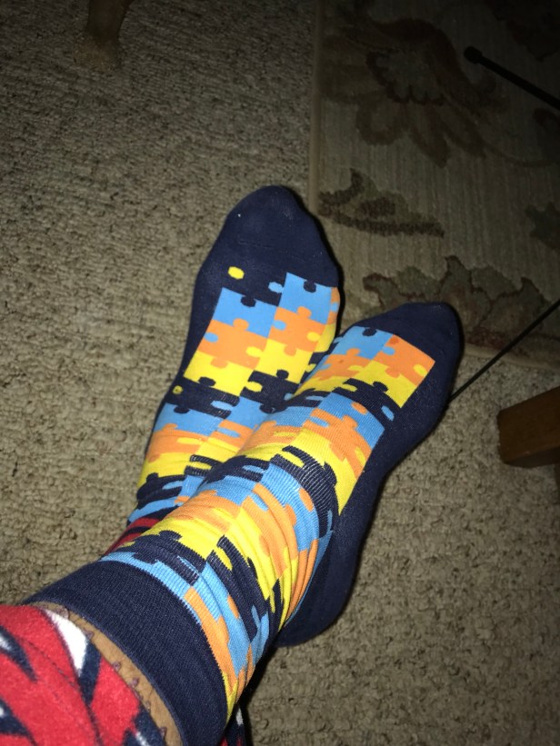 After spending 2 and a half days in Lexington with the Daughter at her forensics competion, I couldn’t begin to tell up why I thought the puzzle pieces would be a good idea for Saturday. All I know is that I finally have my feet…and the puzzles decorating them…elevated in my recliner. If anyone needs me, I’ll be enjoying a beer.