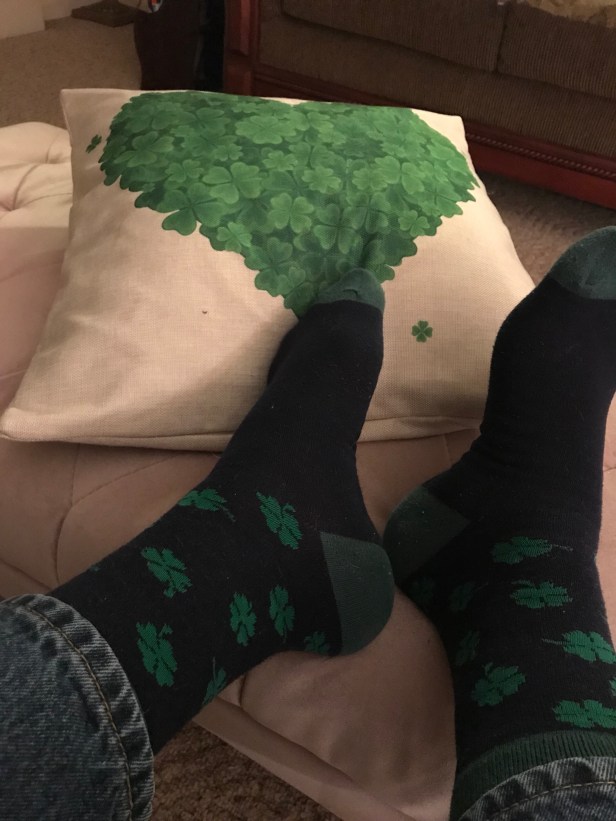 Surely it comes as no surprise to anyone thay The Puddinette had me well setup for St. Patrick’s Day. In fact, I’ve got several holidays waiting for me in the drawer already. But then, when you’re married to someone who has the presence of mind to make sure even the couch is decked out in appropriate green shamrocks, it’s not hard to tell just exactly who won the marriage lottery. Sure, I pour a mean beverage for her, but it seems like poor trade off for putting with all my nonsense and still making sure I’ve got just the right socks!
