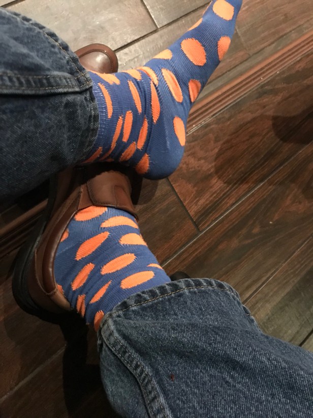 Orange dots on a field of blue. The perfect socks to applaud FC Cincinnati’s first win of the season. But, more interestingly, this particular pair triggered a conversation about what exactly defines the ubiquitous Polka Dots. Most everyone who saw these today made gliv reference to polka dots. But, is that just because of dots? Surely not all dots are polka flavored, right? If not, though, what’s the difference?