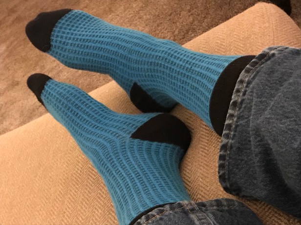 Look ma! Socks! And I really like this pair too. The pattern is such that I spent most of the day trying to decide if I actually had them on inside out. Sure, that doesn’t necessarily sound like a positive thing, but when you’re goal is to be different every day, it’s hard to argue that’s a feature.