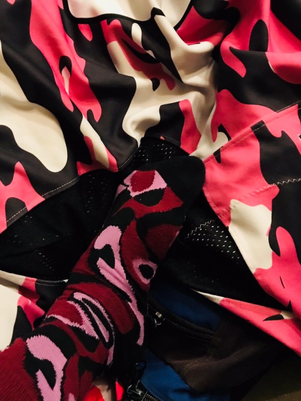 I’ve been holding on to these sweet pink camo socks for just the right occasion, and I’d be hard pressed to come up with one better suited than when they’d my team’s pink camo jerseys. Ironically, while I doubt the socks would be of much use in the wild from a camouflage perspective, and I know the jersey stands out like a sore thumb at the rink, when I put them together tonight, it’s actually pretty hard to figure out where the socks end and my jersey begins. Who knew that pink camo rocked the camouflage game when it came to other pinkish camo?