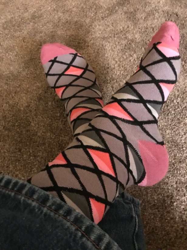 I wore these today because I had another hockey game and figured they were a good match for my jersey (not that I’d actually wear both at the same time, but that’s neither here nor there). As too often happens, though, life got in the way and I didn’t get to play tonight. But that’s okay, the socks are still awesome, and they deserved a solid Sunday outing anyway.