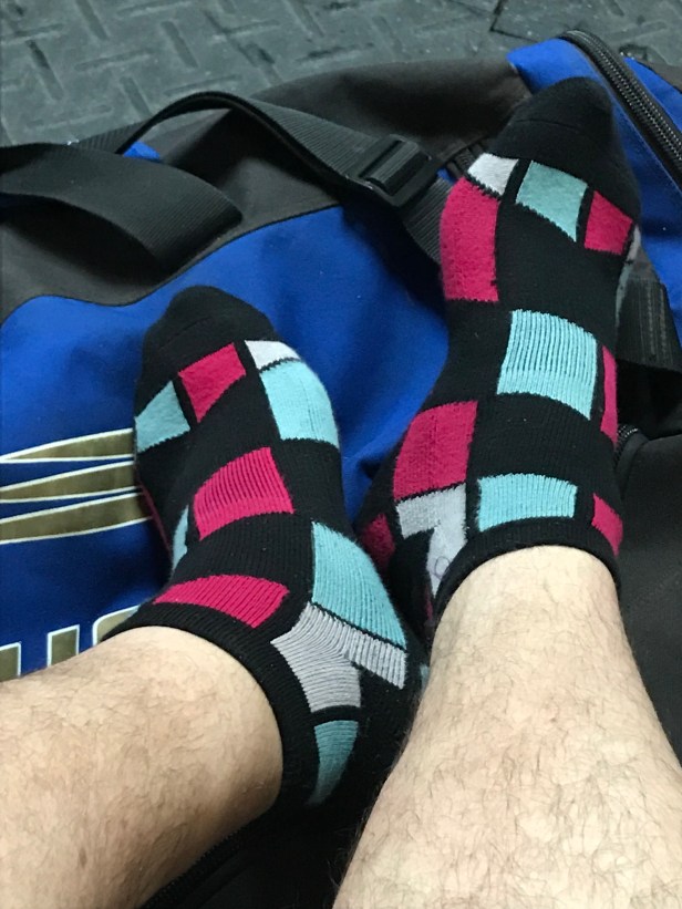 Thus begins the summer train of ankle length socks. I wore these today because they match my hockey jersey and we played our last game until September tonihht. But more importantly, today’s choice totally showcases the paleness of my legs.