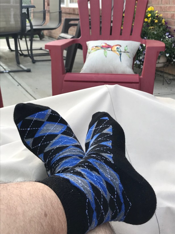 Without any further ramblings, I offer you today’s delightful blue, black, and grey plaid print. As they’re a pretty solid match for my high school colors, I might actually even have to hold on to these as one of the ten or so pair I’ll be keeping after the end of all this 2018 tomfoolery.