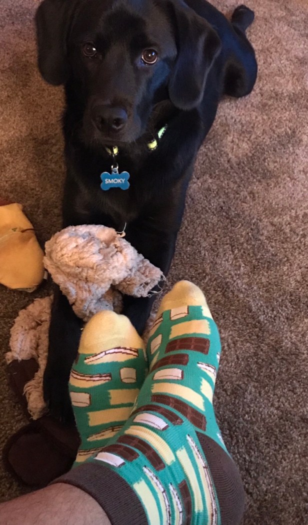 Smoky, though, could care less about my feelings on the subject of marshmallows. Or summer for that matter. As far as he’s concerned, it’s evening and I’m in the recliner, and that means nothing except, of course, it’s time to play. Preferably with the hollowed out fabric remains of a once-stuffed bear.