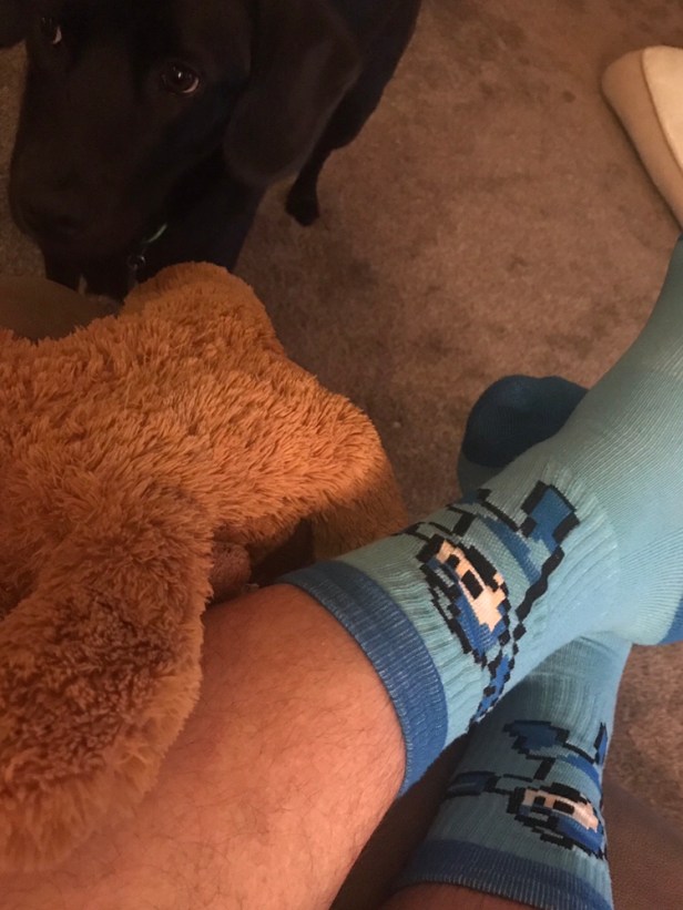 A colleague — who has also been one of my better friends off and on for nearly 40 years now — was completely joking around and giving me the business this morning, as old friends do. Not having seen today’s socks, he joked that I was sporting a nice shirt but wearing entirely underwhelming socks. At which point, I pulled up my pants leg for the full Mega Man reveal.