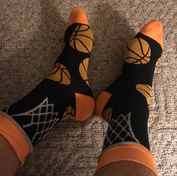 Continuing the theme of the week, I couldn’t possibly live with myself if I hadn’t had a pair of basketball socks. Now, the Puddinette will not favor this picture, because she prefers when they look more “natural”, meaning “at comfortable rest” rather than “looking like I just shoved my feet out in front of me and grabbed my phone”. She’ll say this looks awkward.
