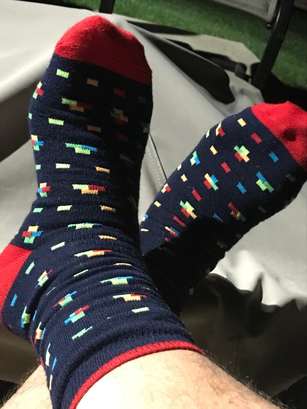 Blog, Daily Pattern Matching Date: September 18, 2018Author: Jason Today’s socks come to use owing to the fact that I was wearing a blue plaid shirt, these mostly matched the colors, and (let’s be honest, most importantly) they loosely resemble Tetris. And, that, friends, is all I got on a very busy Monday. Share: Click to email a link to a friend (Opens in new window) Email Click to share on X (Opens in new window) X Click to share on Facebook (Opens in new window) Facebook Click to share on Pinterest (Opens in new window) Pinterest Click to share on Tumblr (Opens in new window) Tumblr More Click to share on Reddit (Opens in new window) Reddit Like Loading... Related