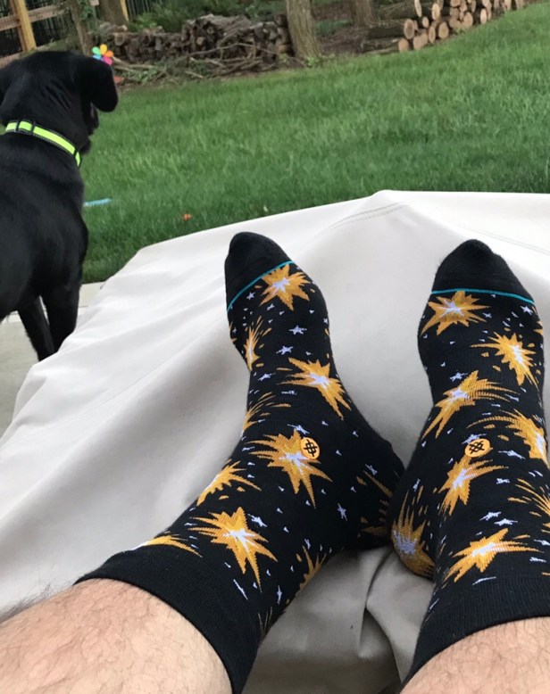 It’s been a pretty explosive week on a fairly large scale out there, and I really felt I needed some way to represent that on my feet this morning. I mean, that’s basically been the MO for 2018, but it made me pretty happy that the Puddinette scored me a pair of fireworks a few weeks ago, because that seem on point at 7 AM today.