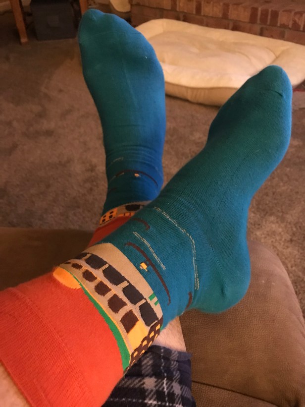 Anyway, now that the Sedan is getting nightly garage time and my kids have started hoping that every forecast of precipitation comes with mention of the S-word, I was hard pressed to come up with a reason NOT to wear these socks today, which feature what I assume are canal boats in Venice. Yeah, maybe I don’t know what the weather is actually like in Venice this week (because I’m too lazy to ask an app to tell me), but I’m perfectly content to assume it pretty much always looks like it did in Indiana Jones and the Last Crusade.