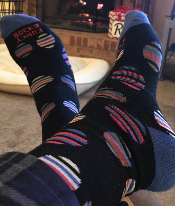 These are my Black Friday socks. Admittedly, they don’t really speak so much about the unbridled avarice of the American shopping culture as much as they’re black and have circles that look very much like Christmas tree ornaments to me.