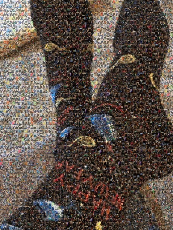 These are the “Happy New Year” socks I wore yesterday. After taking the picture below, I used the 365 images of the socks from the past year and some nifty software to make the mosaic above.