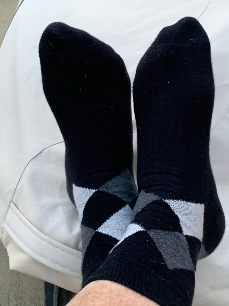 Luckily that didn’t happen–and really couldn’t have, given our current social situation–because otherwise I was wearing shorts and my National Sock Day tee-shirt.
