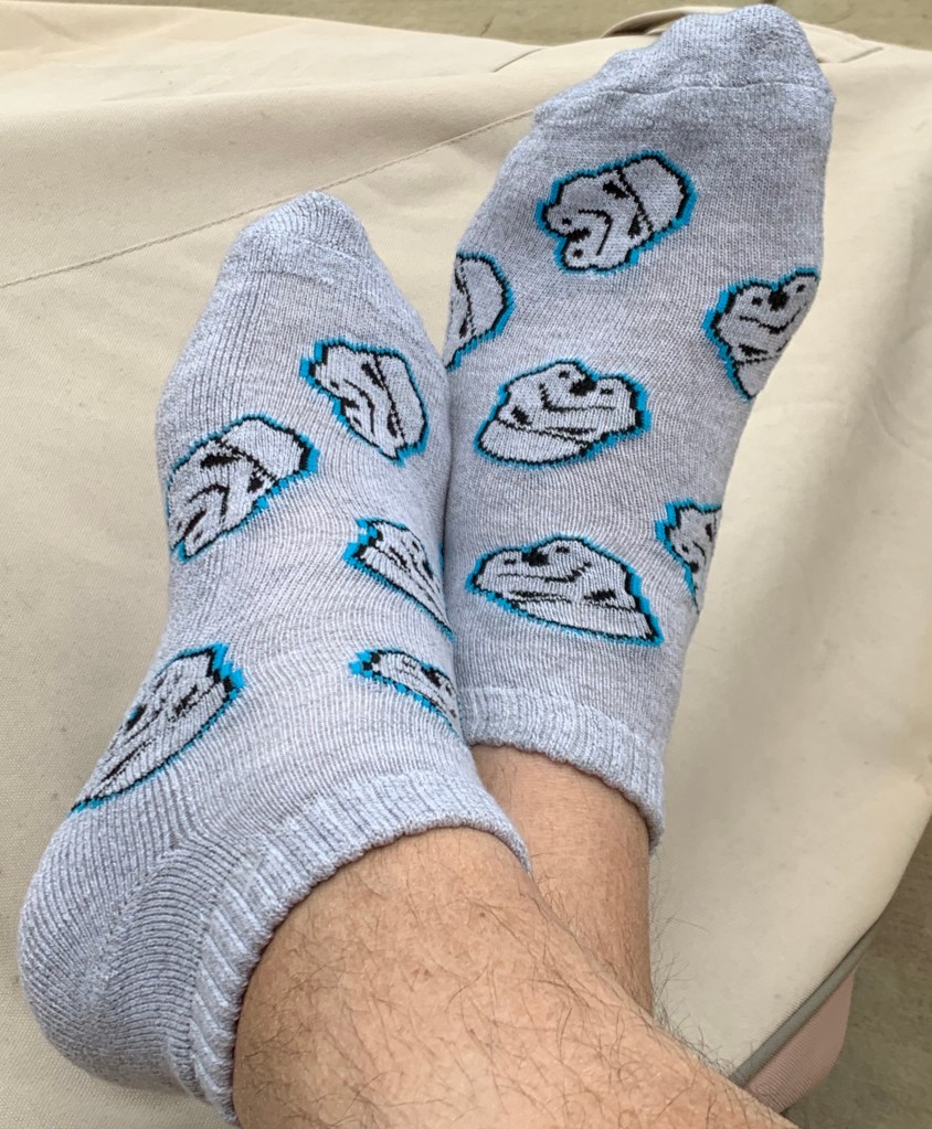 I failed to make sure I had appropriate holiday socks for today so instead I wore something as unrelated to Easter, Passover, or what have you as I could find.
