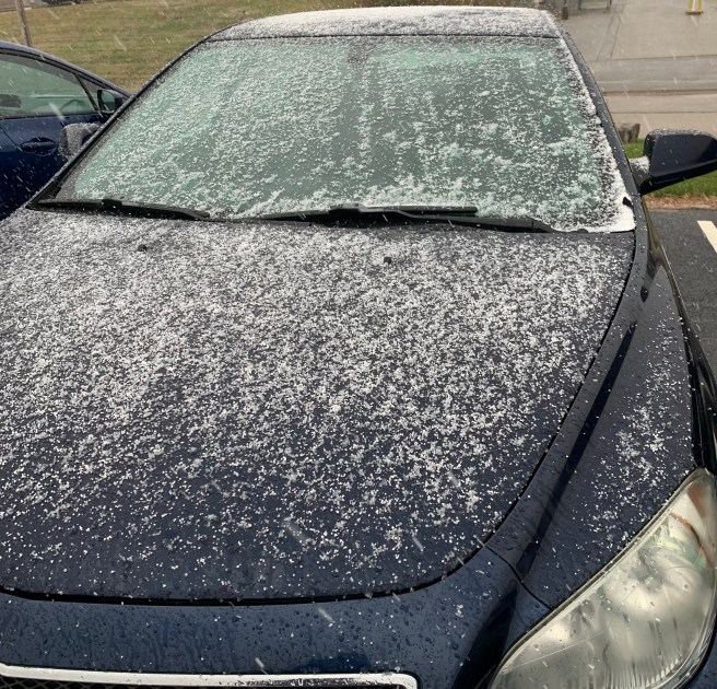 It’s been downright cold since, and then today the real slushie hit the fan. I drove to work this morning barely stifling the white-hot rage I could feel in my earlobes and toenails — but not my frosty hands, mind you — while I cruised through an alarming concoction of very fine flurries, drizzle, and even some gods-forsaken freezing rain. Then later in the afternoon, I walked outside and found my car covered in a thin layer of wintry go f!*k yourself mix.